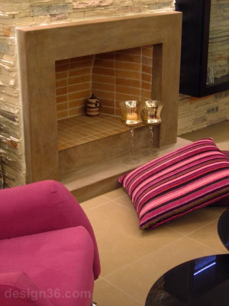 Στο καθιστικό κυριαρχεί το τζάκι, ενταγμένο στον πέτρινο τοίχο, ενώ η τραπεζαρία διαχωρίζεται από την είσοδο με το ενυδρείο το οποίο σχεδιάστηκε και κατασκευάστηκε κατά παραγγελία ειδικά για αυτό το χώρο.